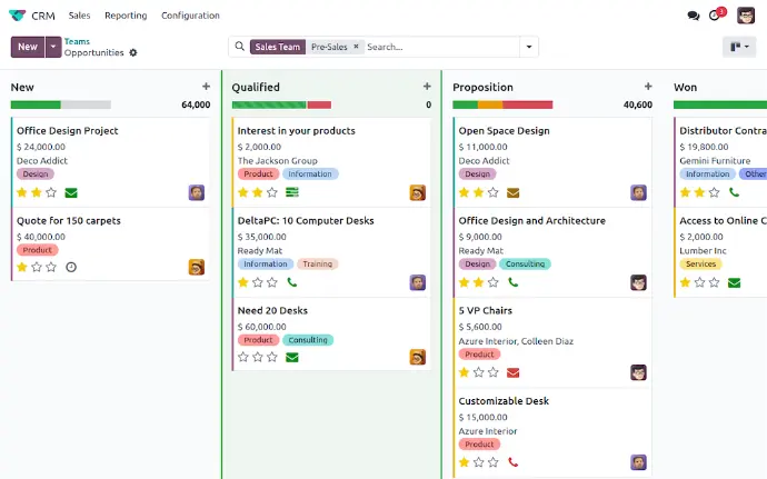 Vendas, CRM, Faturação, Inventário, Compras, Projetos, Recursos Humanos, Helpdesk,